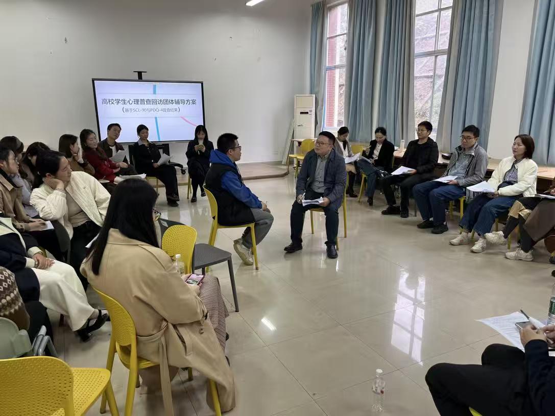 为做好2025年秋季学期学生心理普查回访,提升普查回访科学性和有效性,学工部于11月3日14:00,在团体辅导室205组织召开了心理普查回访技术提升团体辅导。此次团体辅导由心理中心主任易敏带领,中心专职教师及学院心理辅导员参加,学工部副部长陶传谱出席。
