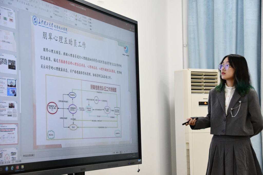 大赛中,各院朋辈从组织章程、课外教育活动、队伍建设和院校联动四个方面介绍本院朋辈工作开展情况,向大家展示了各具特色的心理活动与组织成果。如国际学院的“领养一盆花”活动、外国语学院的“我的晚安曲”“女神蜕变计”活动等,富有创意、形式新颖,值得各学院学习采纳。经过两个多小时的精彩分享,外国语学院、计通学院、城南学院、法学院、经管学院和水利学院获得现场评比前六名的优异成绩。