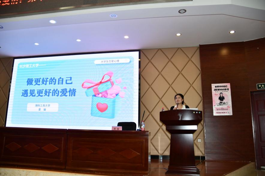 6月6日晚七点,云顶国际vip8866心理中心在云塘校区文科楼圆厅A200组织开展了“做更好的自己,遇见更好的爱情”大学生恋爱心理讲座。该讲座为云顶国际vip8866第十九届“5·25”心理健康主题教育活动之一,邀请湖南工商大学心理健康专职教师、中国心理学会注册心理师夏璇主讲,向同学们分享有关爱情的心理知识和人生经验。