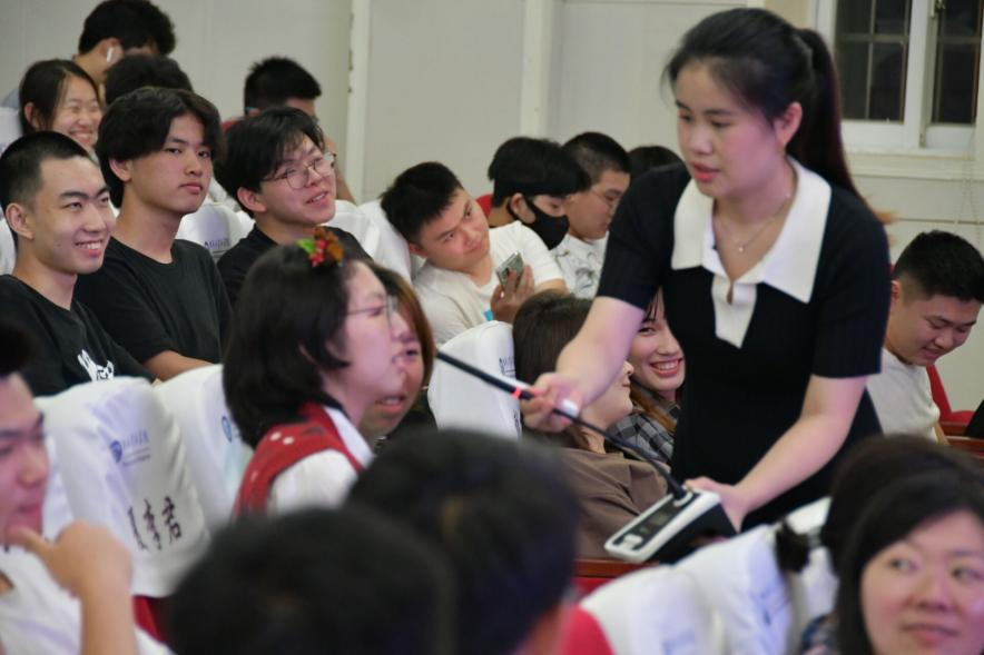 在讲座的开始,夏老师与同学们谈论最近观看的爱情电影或电视剧,活跃了讲座氛围,拉近老师与同学们之间的距离。