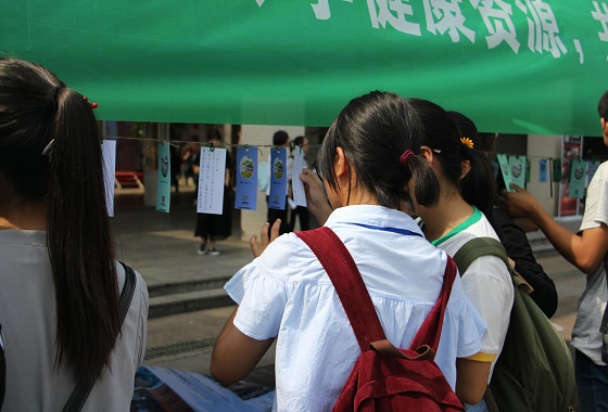 在宣传帐篷四周悬挂着一张张制作精美的彩色题签,上面写满了精神卫生问题,吸引了许多同学驻足观看。在校朋辈工作人员的热情引导下,同学们积极参与了此次"猜灯谜"精神卫生知识竞赛游戏,在帐篷前仔细看着各个题签,通过翻阅精神卫生知识宣传册和研读知识展板等方式来解答问题。校朋辈工作人员为参加竞答的同学精心准备了许多丰富的小礼品。