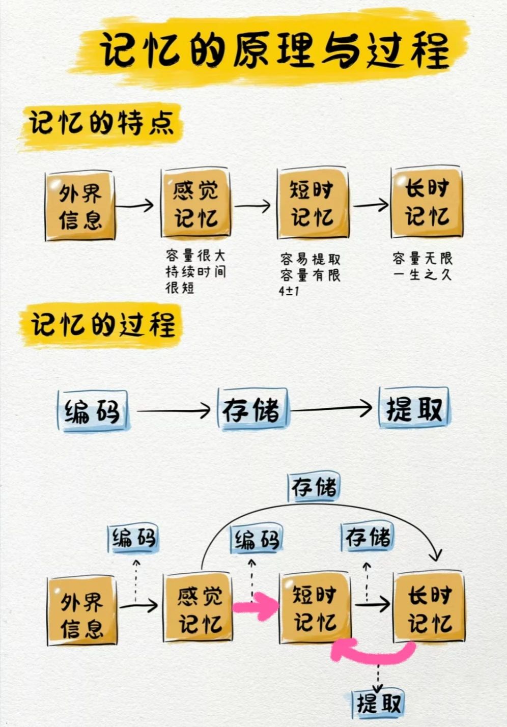 它们之间也可以互相转换,上面谈到的记单词总是记不住就是“短时记忆”向“长时记忆”转换失败。