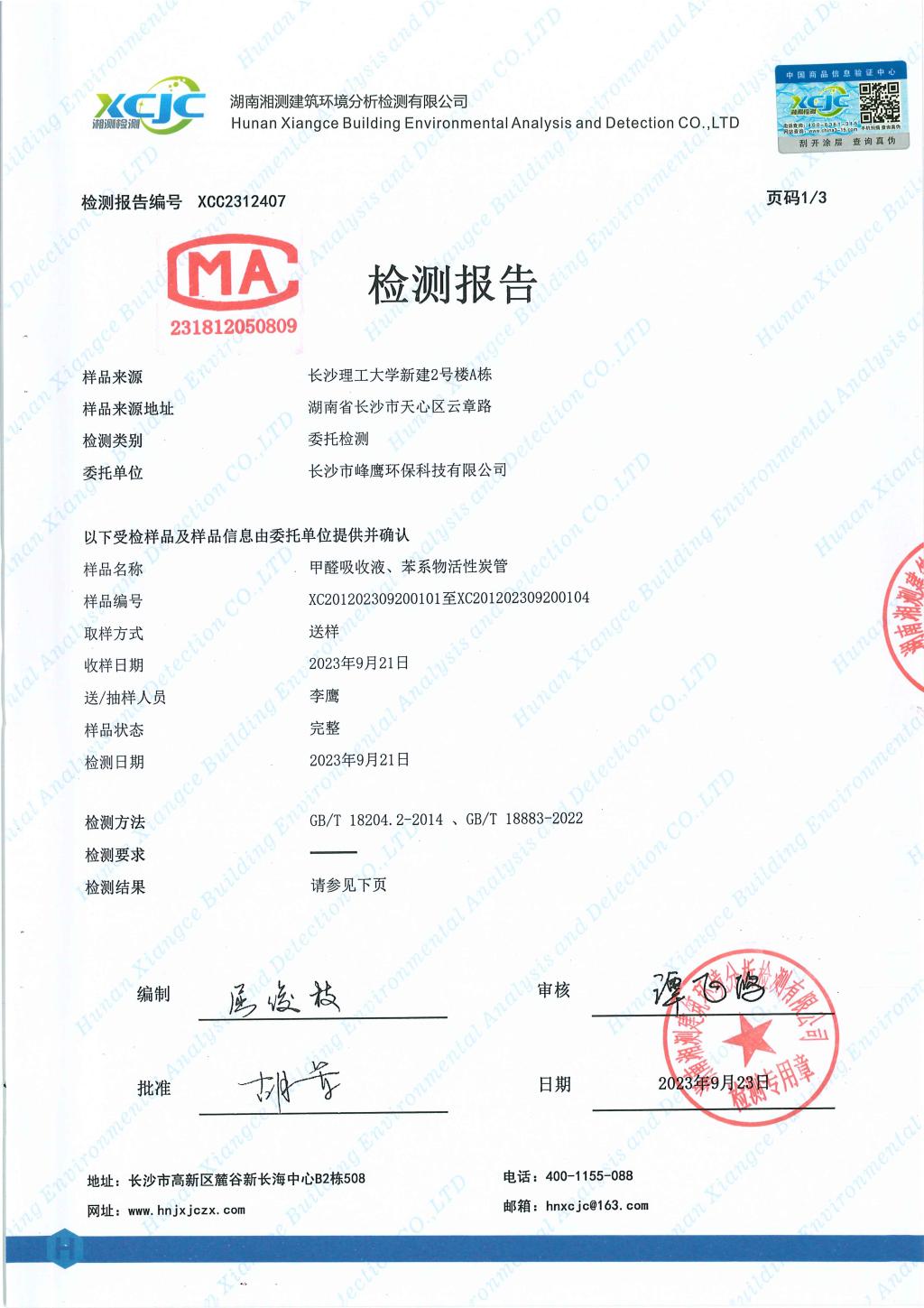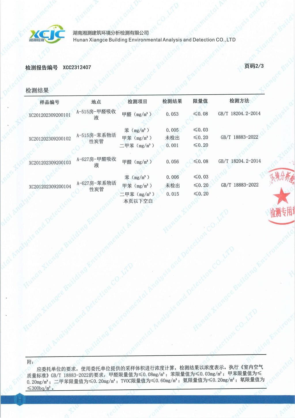 新建四期公寓2号栋(敏行轩4栋)A区空气质量检测报告