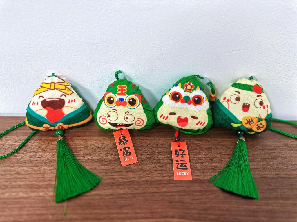 在制作艾草香囊的过程中,通过视频的形式详细讲解了艾草香囊的制作方法和步骤,学生们挑选了心仪的香囊样式和香料,按照教学视频的示范,认真地剪裁布料、缝制香囊。各类艾草香囊承载着不同的寓意,有的寓意“平安”,有的象征“喜乐”,还有的寄托“安康”的祝愿。随着双手的灵巧舞动,不一会儿,一个个小巧玲珑、“艾”香四溢的艾草香囊就制作完成了。这些香囊不仅散发着端午节的传统魅力,更承载着学生们彼此间真挚而美好的祝愿,他们相互赠予,将这份独特的节日礼物和深厚的情谊传递给每一位伙伴,共同体验着传统文化的魅力与温暖。