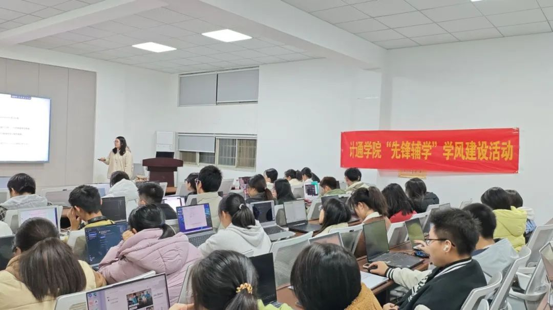 12月5日晚,计通学院于金盆岭校区9号教学楼211举办第十一期“先锋辅学”学风建设活动,此次活动由网络2201胡永恒主讲,45位学员参与。