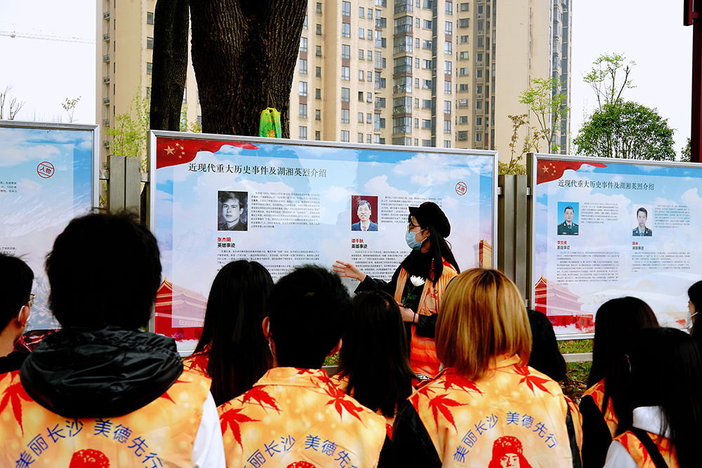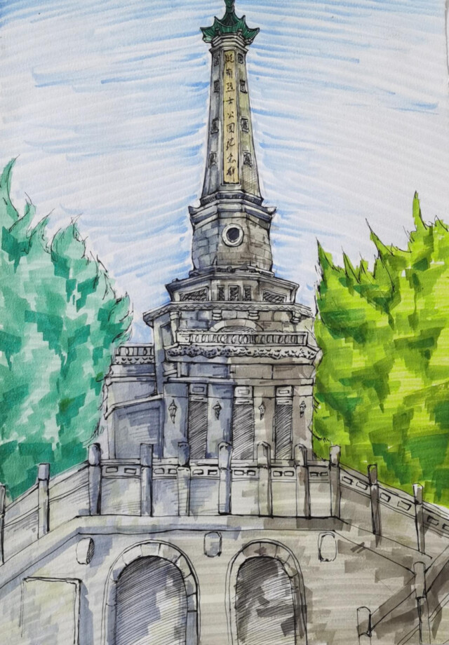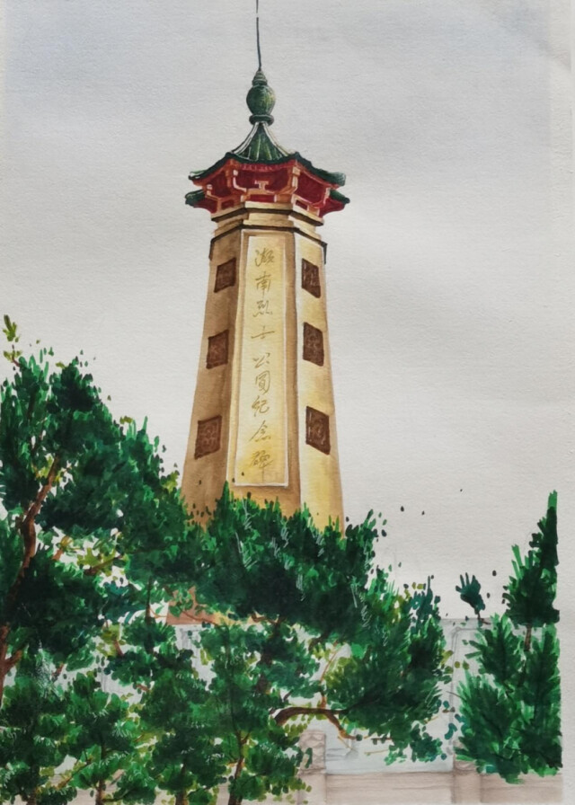 4月4日,设计艺术学院50余名学生携带着画笔和画板齐聚长沙烈士公园,用自己的方式缅怀革命英烈,以专业之力献一腔追思。他们3人一组对烈士公园内的标志性建筑手绘速写,最终所有作品将粘贴在六米长的画轴上,呈现出烈士公园的全景。当六米长的画轴徐徐展开,烈士公园的全景跃然纸上。这是一次庄严肃穆的创作,也是一次心生敬意的创作。“他们都是2020级新生,入校近200天,这是第一次见到学生们对自己的作品如此‘用心’,对描绘的细节如此‘较真’,在作品中能感受到他们的真心与实意,我想这就是对先烈的敬意和精神的力量。”该院辅导员程静征这样说道。