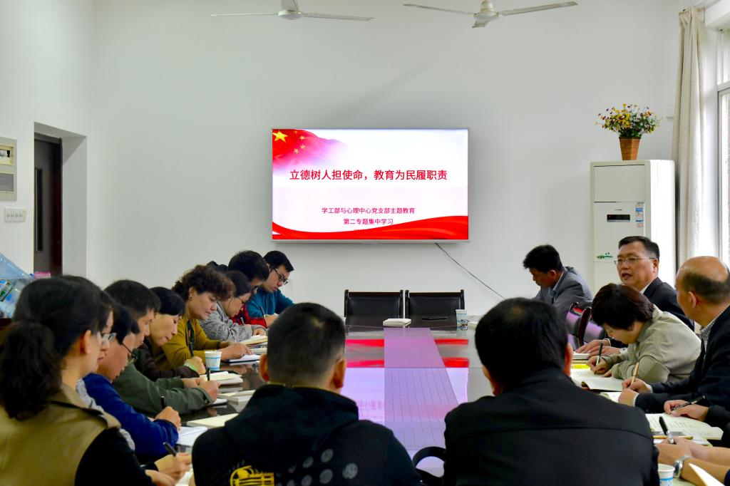 10月16日上午,学工部与心理中心党支部围绕“立德树人担使命、教育为民履职责”这一专题开展“不忘初心、牢记使命”主题教育第二次集中学习。支部书记艾楚君讲授了专题党课,支部副书记霍向阳导学了习近平关于“不忘初心、牢记使命”论述摘编。心理健康教育中心副主任龚勋作主题发言。副校长谈传生对学生党员和学工支部如何开展好主题教育提出了要求。
