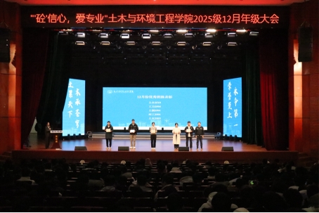 12月29日,土木与环境工程学院于云塘校区大会堂召开2025级本科生“‘砼’信心,爱专业”12月年级大会,年级辅导员及全体2025级本科生参会,会议由年级辅导员龚丁主持。