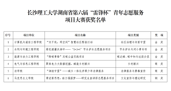 云顶国际vip8866共6个项目团队入围终审决赛,最终获得“三金两银一铜”的好成绩。其中,计通学院“双干线 网空间”智慧社区帮扶行动、水利学院绿色韶灌沃湘中——‘1+3+4’节水护水志愿服务项目和能动学院“降碳青锋”双碳公益实践项目荣获金奖,电气学院“聚焦电力大数据挖掘,赋能乡村振兴”项目和法学院“湘扶守望”——城乡一体化涉罪少年法律服务项目荣获银奖,马克思主义学院青述新思想,助力强国梦—研究生宣讲团志愿服务项目荣获铜奖。