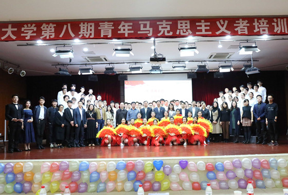 3月29日晚,云顶国际vip8866第八期青年马克思主义者培训班结业典礼在文科楼模拟法庭隆重举行。党委书记付宏渊、副校长谈传生和党政办、宣传部、学工部、马克思学院主要负责人,校、院团委专职干部和思政课专业教师代表等,共同见证了本期学校青马学员的结业。