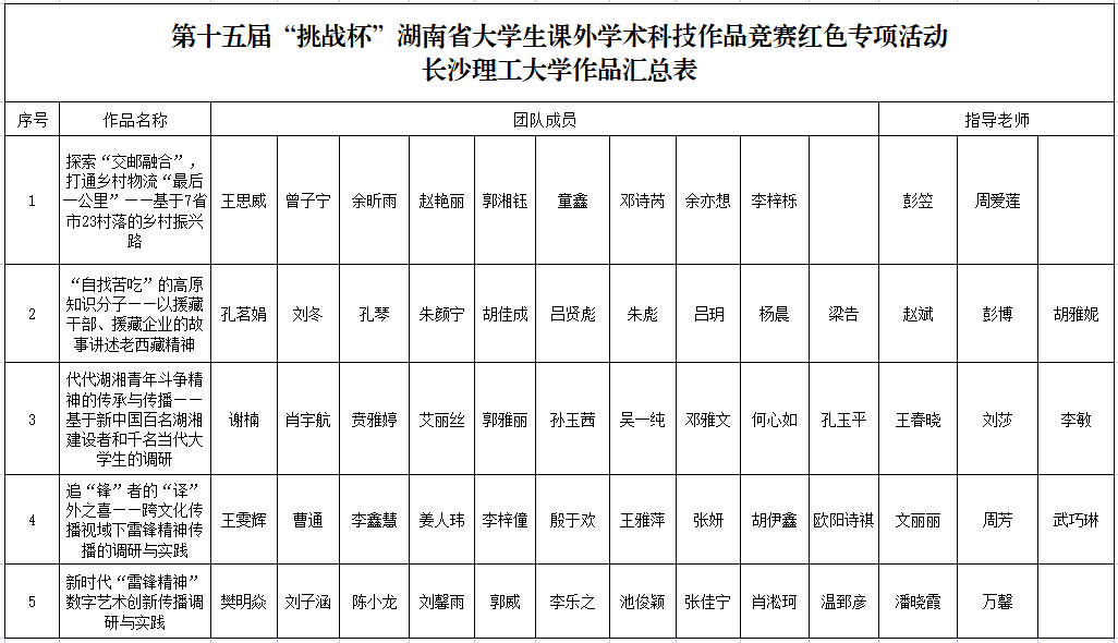 经专家评审,云顶国际vip8866拟推荐5项作品参加第十五届“挑战杯”湖南省大学生课外学术科技作品竞赛红色专项活动。