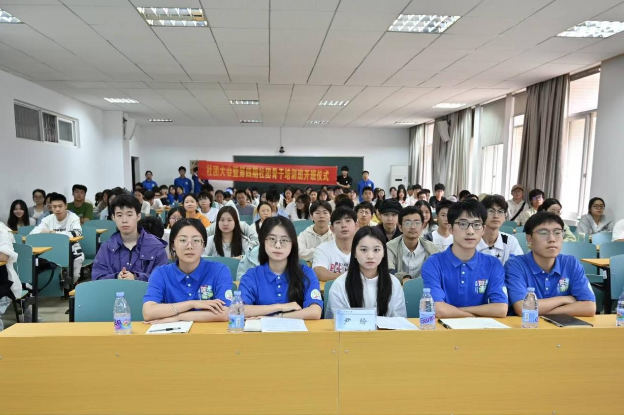 会议由社团大会和社团骨干培训班开班仪式两部分组成。首先,校团委尹纷老师在致辞中肯定了学校社团的现阶段发展情况,并强调社团骨干应以学习为本、服务为魂,明确责任使命,提升综合素质,引领社团发展;此外,她还强调了创新和实践的重要性并鼓励大家勇于尝试新方法,推动跨社团合作与工作模式创新。随后,学社联各部门代表讲解相关制度,帮助社团了解学年活动与评优事宜。
