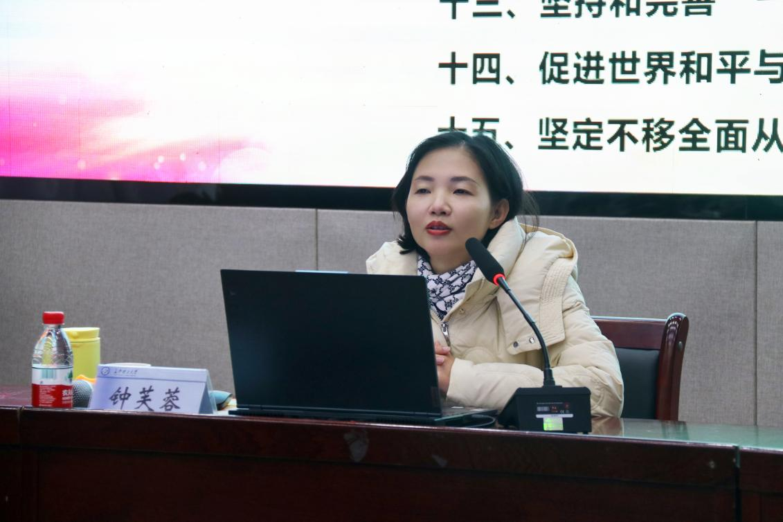 12月22日下午,云顶国际vip8866第十四期“青马班”第四次理论课程于云塘校区工科楼二号教学楼B301进行,本次课程邀请云顶国际vip8866马克思主义学院钟芙蓉副教授主讲,校团委副书记陈璐莎,基层团学干部代表及全体“青马班”学员与会。