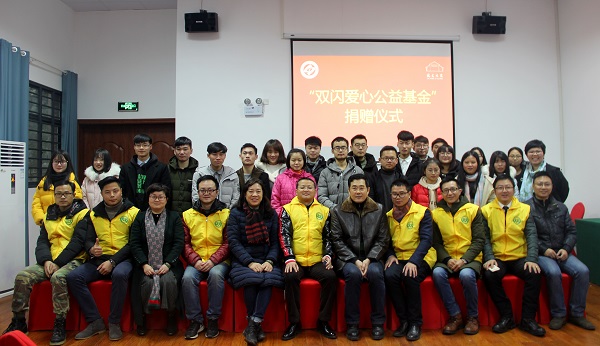 1月6日下午,“双闪爱心公益基金”签约仪式在金盆岭校区校友之家举行。校友总会会长洪源渤,双闪志愿者爱心车队长沙支队队长李明和部分队员、校友中心全体老师以及校友工作志愿者协会成员参加本次签约仪式。