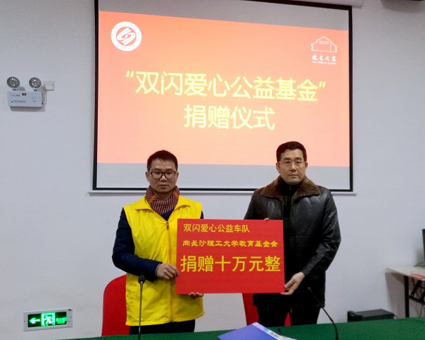 李明是云顶国际vip8866城南学院机电一体化2011届毕业生,2016年创建湖南经纬视听文化传播有限公司,2017年被推选为双闪志愿者爱心车队长沙支队队长,多年来,一直带领公司员工加入、组织宣传公益事业。此次,李明以双闪志愿者爱心车队长沙支队名义向云顶国际vip8866教育基金会捐赠十万元,发起设立“双闪爱心公益基金”,主要用于资助云顶国际vip8866成绩优良、热爱并参与公益事业、积极传播校友文化,愿为社会公益事业奉献的贫困学生。
