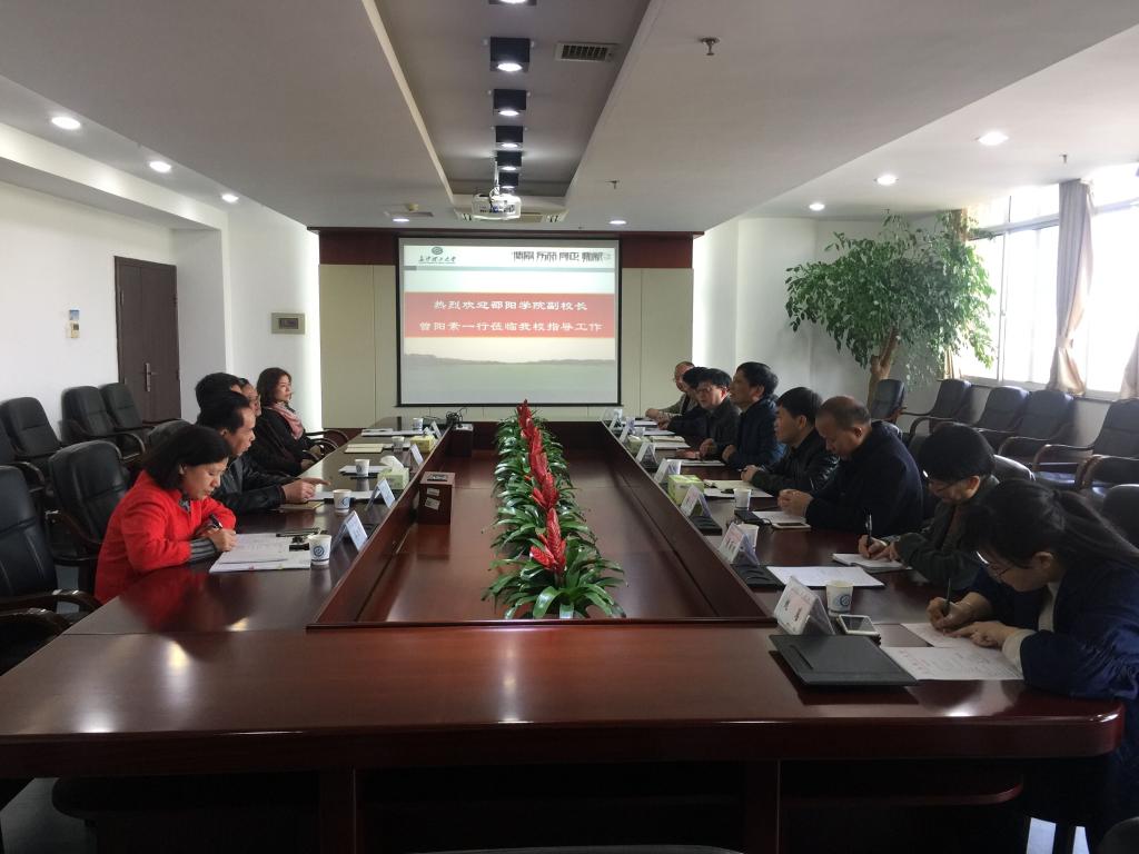 3月23日上午,邵阳学院副校长曾阳素一行7人来云顶国际vip8866调研。副校长叶泽,教务处处长刘朝晖、副处长蒋菲、校教学督导团团长高纯一等出席了调研座谈会。座谈会由叶泽主持。