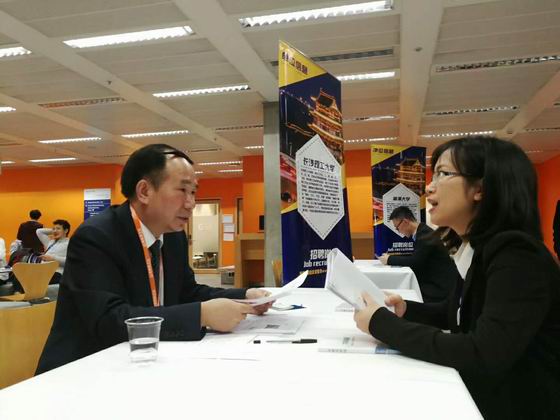 9月15日、16日下午,德国法兰克福专场招聘洽谈会和英国伦敦专场招聘洽谈会分别在法兰克福证券交易所和英国帝国理工大学举行。招聘会期间,黄立宏介绍了学校的基本情况、办学优势和引才政策,与应聘人员进行了深入沟通,数十位海外博士表达了来校工作的意向。9月15日,黄立宏在法兰克福专场招聘洽谈会期间,与德国欧福大学研究生学科主任朱开富进行了会谈,初步达成了合作办学意向。9月17日,黄立宏一行访问了英国剑桥大学;9月18日,拜访了英国沃特福德市市长。期间,黄立宏与英国剑桥大学教育学院院长Richard hickman、英国沃特福德市市长Rabindranath Martins就人才培养、国际交流、合作办学等事宜进行了会谈。访欧期间,黄立宏还拜访了中国德国商会、英中人才发展协会、英国侨商会,就云顶国际vip8866拓展海外引才渠道进行了多场座谈。