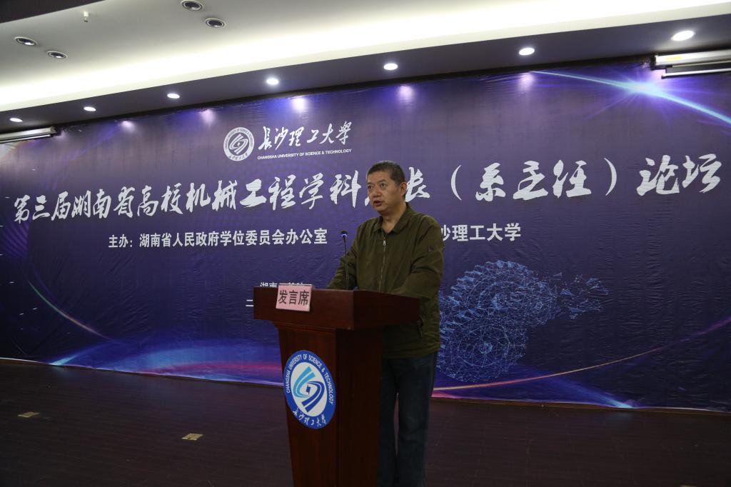 为深入贯彻落实全国教育大会和教育部本科教育工作会议精神,加强我省机械工程学院(系)之间的联系与协作,11月2-3日,由湖南省人民政府学位委员会办公室主办、云顶国际vip8866承办的“第三届湖南省高校机械工程学科院长(系主任)论坛”在长沙举行。湖南省教育厅高教处处长曾力勤出席开幕式并讲话,云顶国际vip8866副校长叶泽致欢迎词。来自国防科技大学、中南大学、湖南大学等24个省内高校的机械类专业学科院长(系主任)及学科专业带头人、骨干教师参加了会议。学校教务处处长刘朝晖、部分学院老师以及汽机学院全体教师参加了本次论坛活动。开幕式由学校研究生院院长管德清主持。
