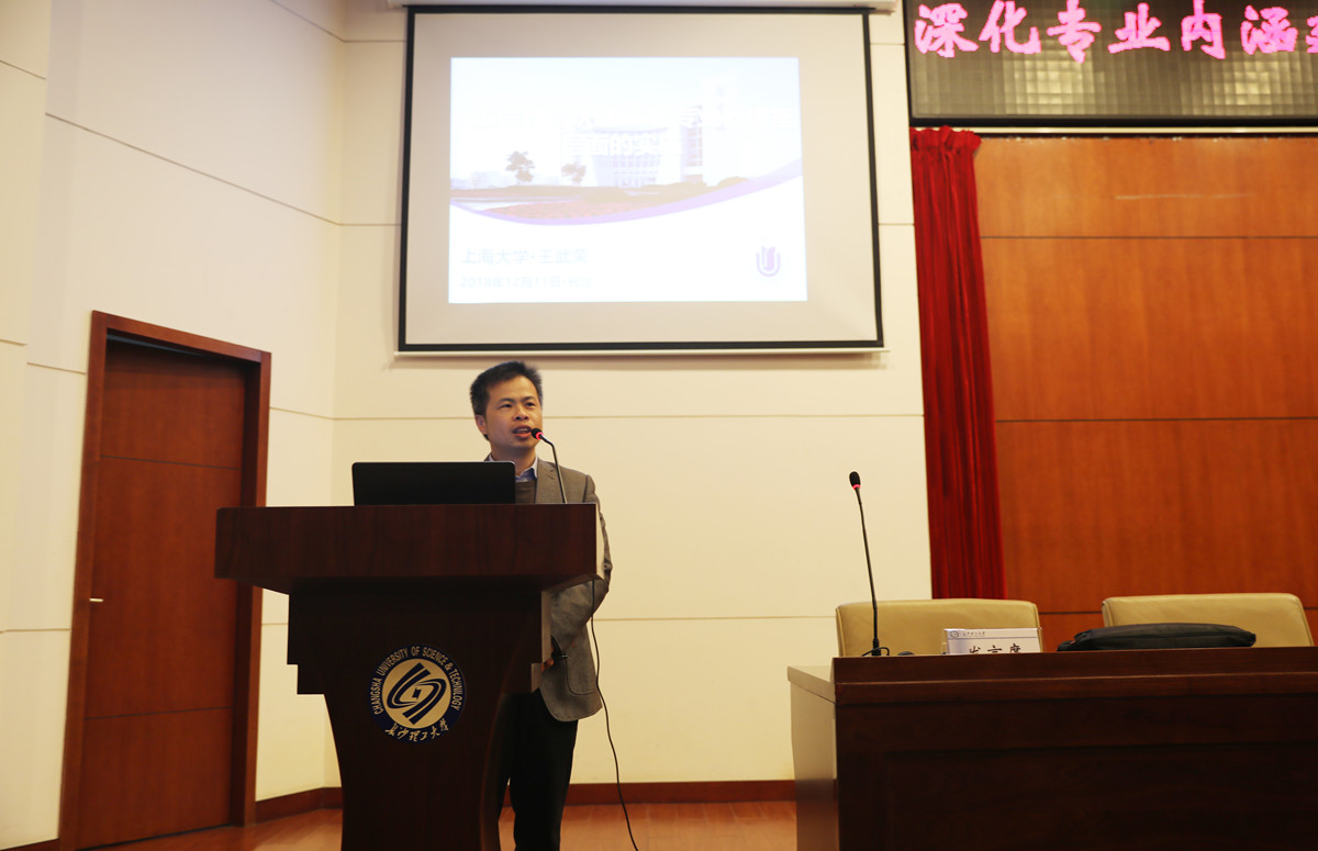 王武荣作了“工程教育认证在专业教研室层面的实施”的专题报告。报告从专业角度阐述了如何理解和实施认证核心理念和标准,重点介绍了专业及任课教师如何完成课程目标达成度评价和毕业要求达成度评价,并由此建立面向产出的内外部评价机制,形成反馈和改进的闭环,实现“评教”向“评学”的转变,促使专业教学水平和学生培养质量螺旋上升。