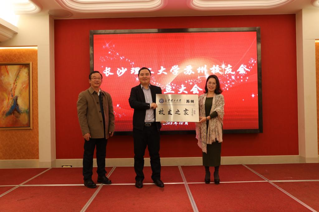 黎正稳为苏州校友会授旗,并颁发“校友之家”牌匾。