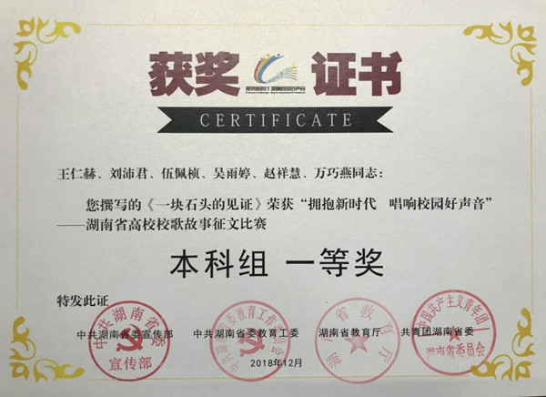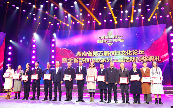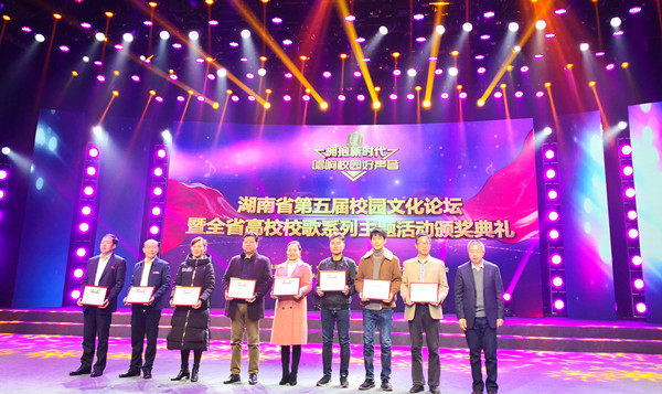 2018年12月28日下午,由省委宣传部、省委教育工委、省教育厅、团省委主办的湖南省第五届校园文化论坛暨全省高校校歌系列主题活动颁奖典礼在湖南省教育电视台举行。云顶国际vip8866选送的作品《一块石头的见证》获校歌故事征文一等奖,创作的作品荣获“拥抱新时代 唱响校园好声音”获得校歌演绎二等奖。云顶国际vip8866、湖南农业大学、湖南理工学院、湖南铁路科技职院四所高校围绕校园文化建设作主旨发言。校党委委员、宣传部部长方琼以《在传承中华传统文化中培育特色大学文化》为题介绍了云顶国际vip8866校园文化建设情况。