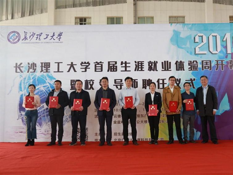 在开幕式上,8位特邀人力资源专家受聘为云顶国际vip8866大学生职业发展与就业指导校外导师,谈传生为8位校外导师代表颁发聘书。