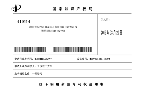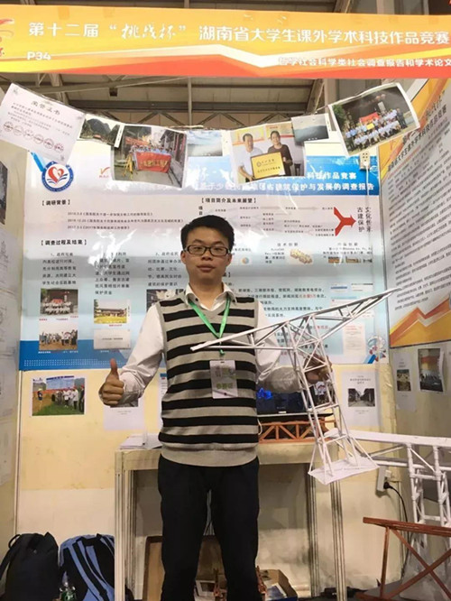 大学期间,杨琪毅始终把理想信念放在首位,积极向组织靠拢,把精力投入学习和各类学科竞赛中。他先后荣获“2018年度湖南省普通高校百佳大学生党员”“湖南省普通高等学校2018届优秀毕业生”“2018年度中国土木工程学会高校优秀毕业生”长沙市“优秀共青团员”;2014-2015年度国家励志奖学金、2016-2017年度国家奖学金;2016年全国大中专学生暑期志愿者‘三下乡’社会实践优秀团队”;第六届、第七届湖南省工程模型设计制作大赛三等奖;湖南省第二届青年志愿者服务项目大赛银奖、十二届“挑战杯”湖南省大学生课外学术科技作品竞赛三等奖;中共长沙市委宣传部“社会主义‘有点潮’”征文三等奖、省教工委和省教育厅“心无旁骛•求知问学”活动一等奖等荣誉和奖项。在进入研究生阶段的学习前,导师刘小燕教授就推荐杨琪毅暑假去工地实习,仅三个月的时间,他就撰写了3项国家专利。读研以来,他已申请并被受理了5项国家专利,另有1项专利待公告。
