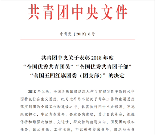 近日,《共青团中央关于表彰2018年度“全国优秀共青团员”“全国优秀共青团干部”“全国五四红旗团委(团支部)”的决定》文件正式下发,云顶国际vip8866土木工程学院2018级硕士研究生杨琪毅同学荣获 “全国优秀共青团员”荣誉称号。