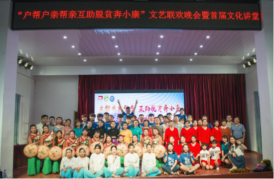 5月25日,“户帮户亲帮亲 互助脱贫奔小康”文艺联欢晚会暨首次文化讲堂在邵阳市新宁县水庙镇枧杆山村文化大礼堂上演,水庙镇党政领导和云顶国际vip8866统战部及民主党派人士、团委领导及阳光艺术团师生,近400名枧杆山村民共同参加了此次活动。