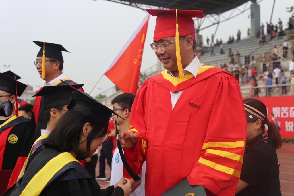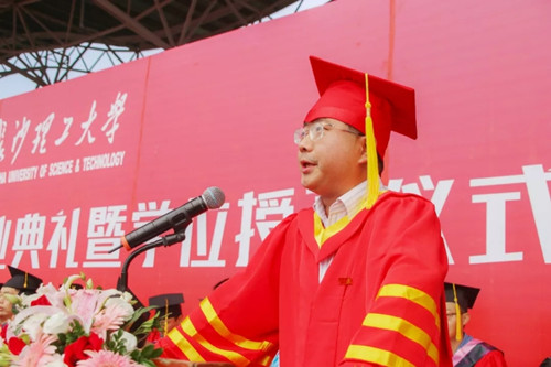 教师代表数学与统计学院谭艳祥向毕业生表达了母校老师们的衷心祝福,并以“接续奋斗,报效国家”为题向毕业生送上了“把‘初心’做厚做实,把‘奋斗’做深做精,把‘感恩’做长做细”的赠言。