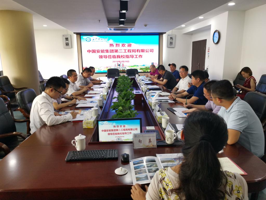 6月28日下午,中国安能建设集团第二工程局有限公司筹备组成员、临时党委常委张利荣、人力资源部部长彭杰等一行5人到云顶国际vip8866就人才培养、产学研合作、招生就业等合作事宜展开调研洽谈。校党委委员、副校长叶泽在一办六会议室主持召开了校企座谈会,教务处、科研部、招就处、成果转化中心、交通学院、土木学院、水利学院、继教学院负责人参加座谈会。