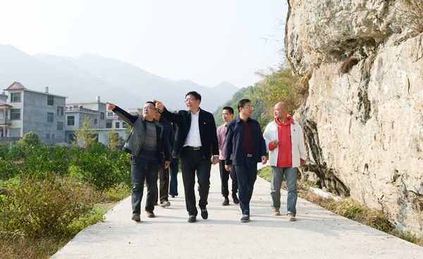 11月8日,校党委书记付宏渊,党委副书记邹宏如,党委委员、党委组织部部长齐路良以及相关职能部门负责人一行前往云顶国际vip8866扶贫点新宁县水庙镇枧杆山村调研指导驻村精准扶贫工作。