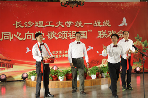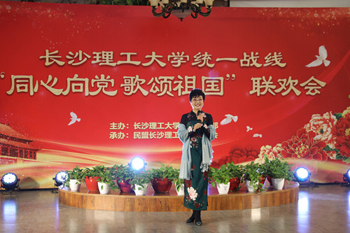 11月19日下午,由校党委统战部主办、民盟长理委员会承办的统一战线“同心向党 歌颂祖国”联欢会在云塘校区举行。湖南省委统战部副部长、省社会主义学院党组书记邓焕生,民盟湖南省委专职副主委胡颖,湖南省委统战部干部处副处长李颖杰、民主党派工作处副处长刘宇、知识分子工作处调研员唐盛华、民主党派工作处副调研员冯胜强、知识分子工作处主任刘鹏,民盟湖南省委组织处处长徐智、参政议政处处长邓彬彬,天心区区委常委、统战部部长刘向、常务副部长胡浩,云顶国际vip8866党委副书记邹宏如,党委委员、纪委书记胡永乐,党委委员、组织部部长齐路良,以及部分职能部门和学院的领导现场观看了联欢会。