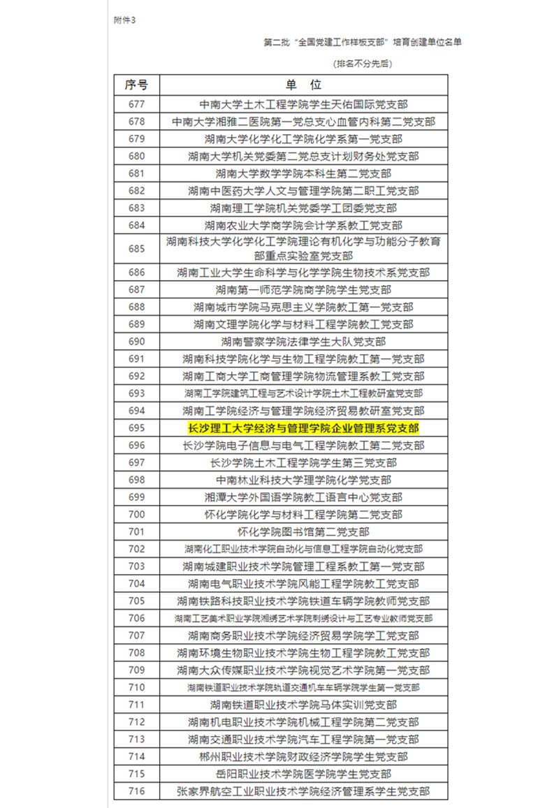 根据《教育部办公厅关于开展第二批新时代高校党建示范创建和质量创优工作的通知》(教思政厅函〔2019〕15号,以下简称《第二批双创工作通知》)安排和评审工作方案,经资格审查、专家推荐、教育部党的建设和全面从严治党工作领导小组成员单位集中审议、结果公示,遴选产生10个高校党委、99个院系党组织、999个党支部分别作为全国党建工作示范高校、标杆院系、样板支部培育创建单位。其中,湖南省高校共有26个党支部获得样板支部培育创建单位,经管学院企业管理系党支部是云顶国际vip8866唯一获此殊荣的党支部。
