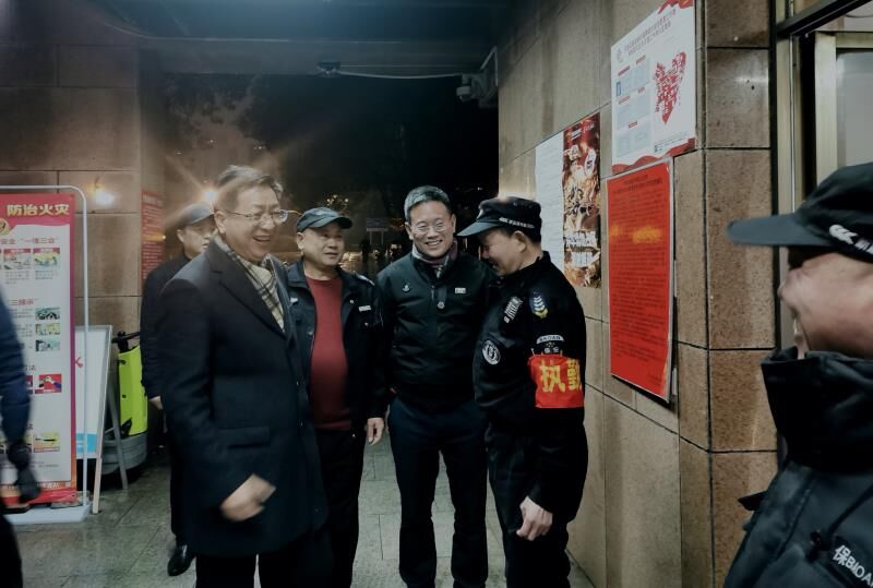 在金盆岭校区保卫楼,付宏渊对值班的保卫干部职工表示亲切的慰问,对保卫部门一年的工作表示肯定,并祝同志们新年快乐。他强调,当前正是新型冠状病毒感染的肺炎疫情防控的关键时期,保卫处要对进出校园的人员车辆进行管控,密切关注新型冠状病毒感染的肺炎疫情防控形势的发展变化,做好突发事件应急预案,提前进行工作培训和演练,把守护师生生命安全和身体健康放在第一位。