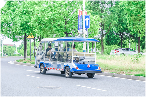 (校内电动车“小白”免费送学生到宿舍区。)