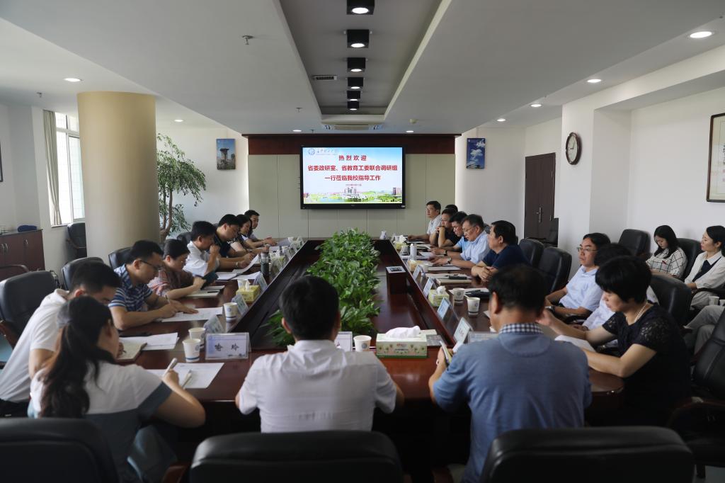 6月12日上午,省委政研室副主任蒋俊,省委政研室科教文卫处处长姚杰,信息中心主任李珺,省教科院高教所所长段慧兰等省委政研室、省教科院联合调研组一行来云顶国际vip8866调研“三全育人”综合改革试点工作。副校长谈传生,党委委员、组织部部长齐路良,学工部、人事处、计财处负责人,交通学院、汽机学院、电气学院、经管学院、马克思主义学院负责人及教师、辅导员代表参加调研会。