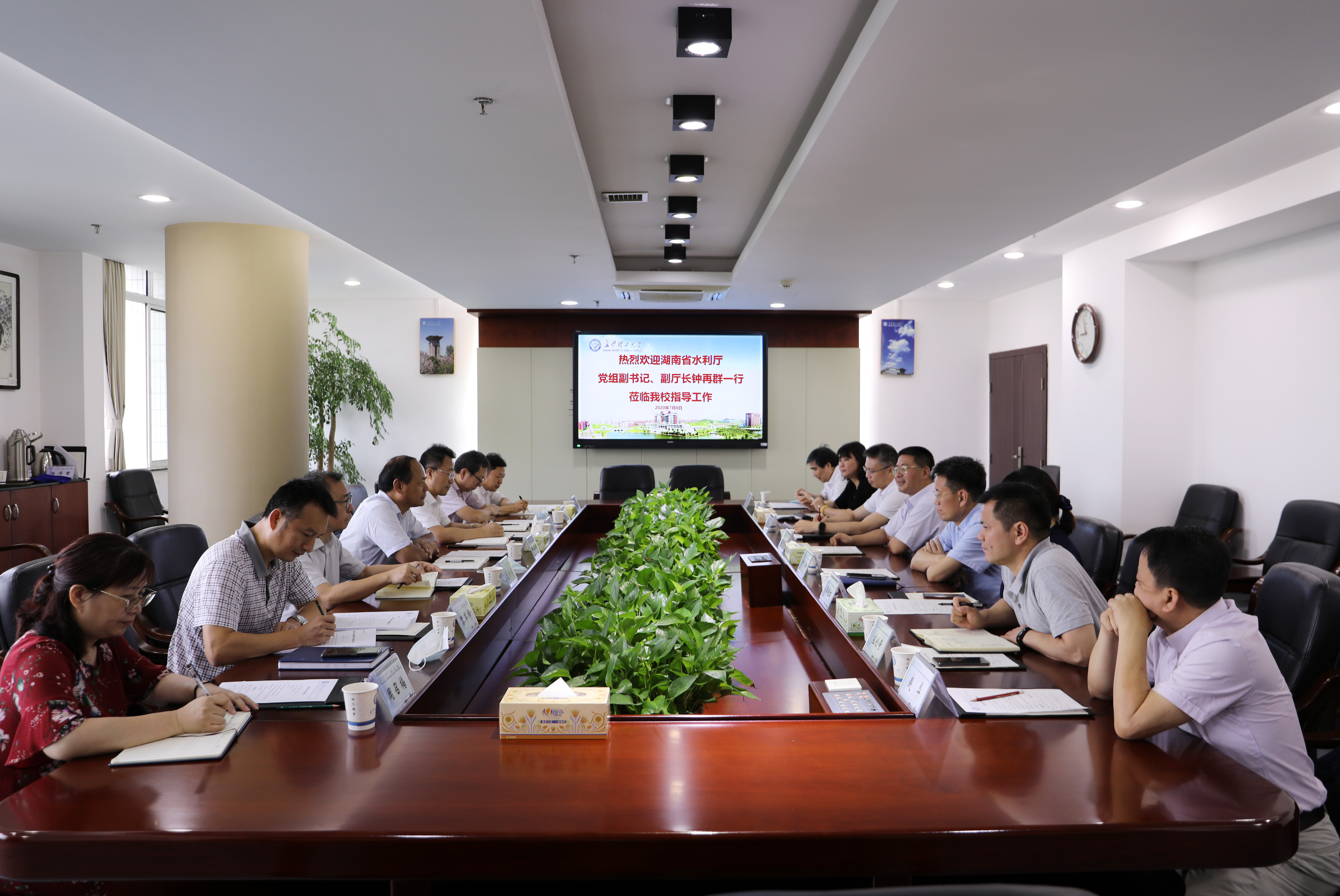 7月9日上午,湖南省水利厅副厅长钟再群一行8人来校调研,校长曹一家,副校长叶泽、蒋昌波及相关部门、学院负责人参加了座谈和调研。