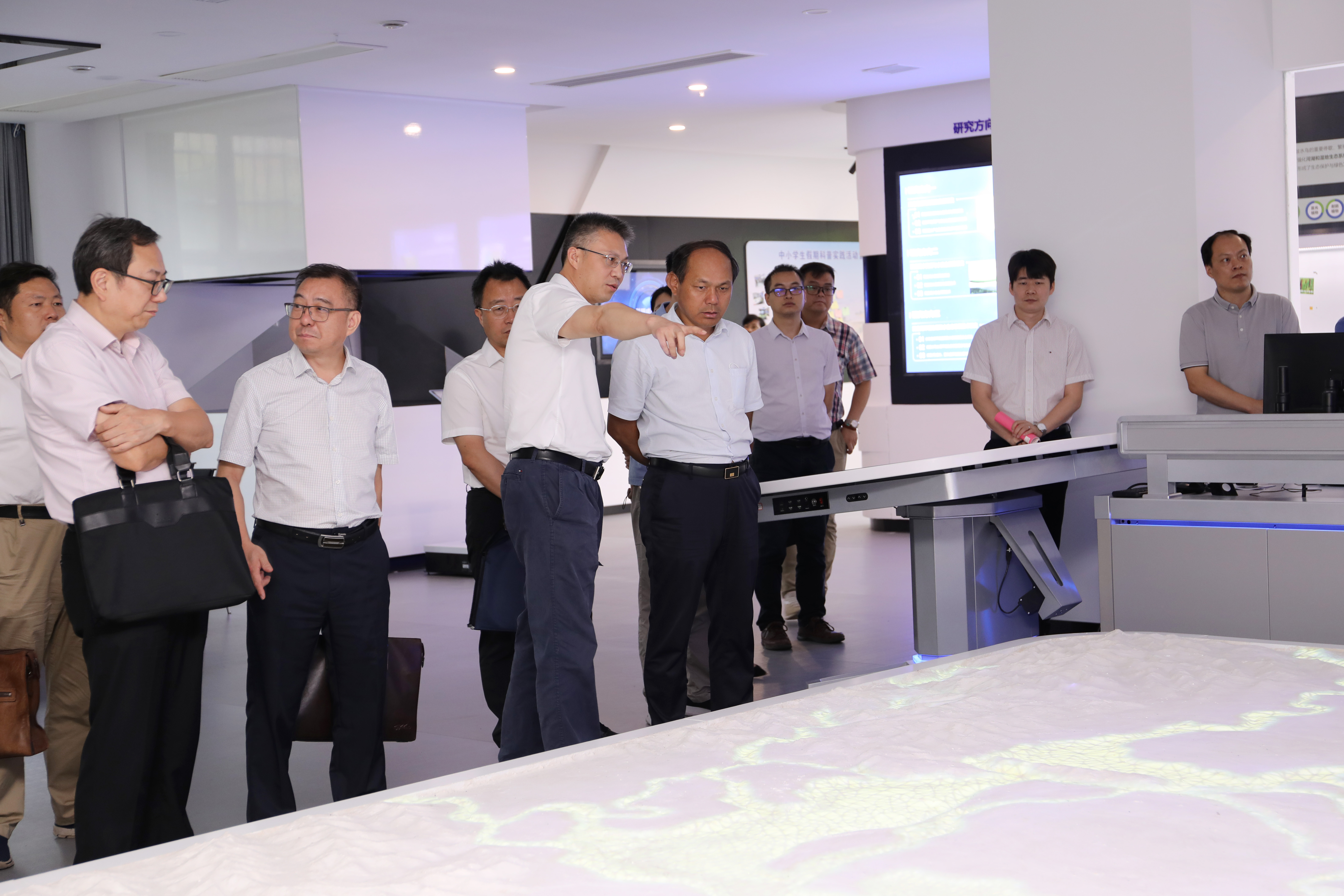 座谈后,调研组一行还走访云顶国际vip8866洞庭湖环境保护与综合治理中心,蒋昌波与水利工程学院相关教师代表陪同调研。蒋昌波介绍了中心的建设历程、主要研究方向及智慧洞庭综合信息化平台的基本情况。蒋昌波表示,本中心将把该平台打造成集空间地理模型、动态监测系统、虚拟仿真数值模型、应急决策服务于一体的综合化信息平台。水利学院院长胡旭跃介绍了初步拟定的“基层水利特岗人员定向培养方案”。钟再群就拟定的培养方案提出了具体建议。最后,双方就本方案进行了深入探讨交流,建议以实际需求为导向,进一步完善培养方案、优化课程体系。