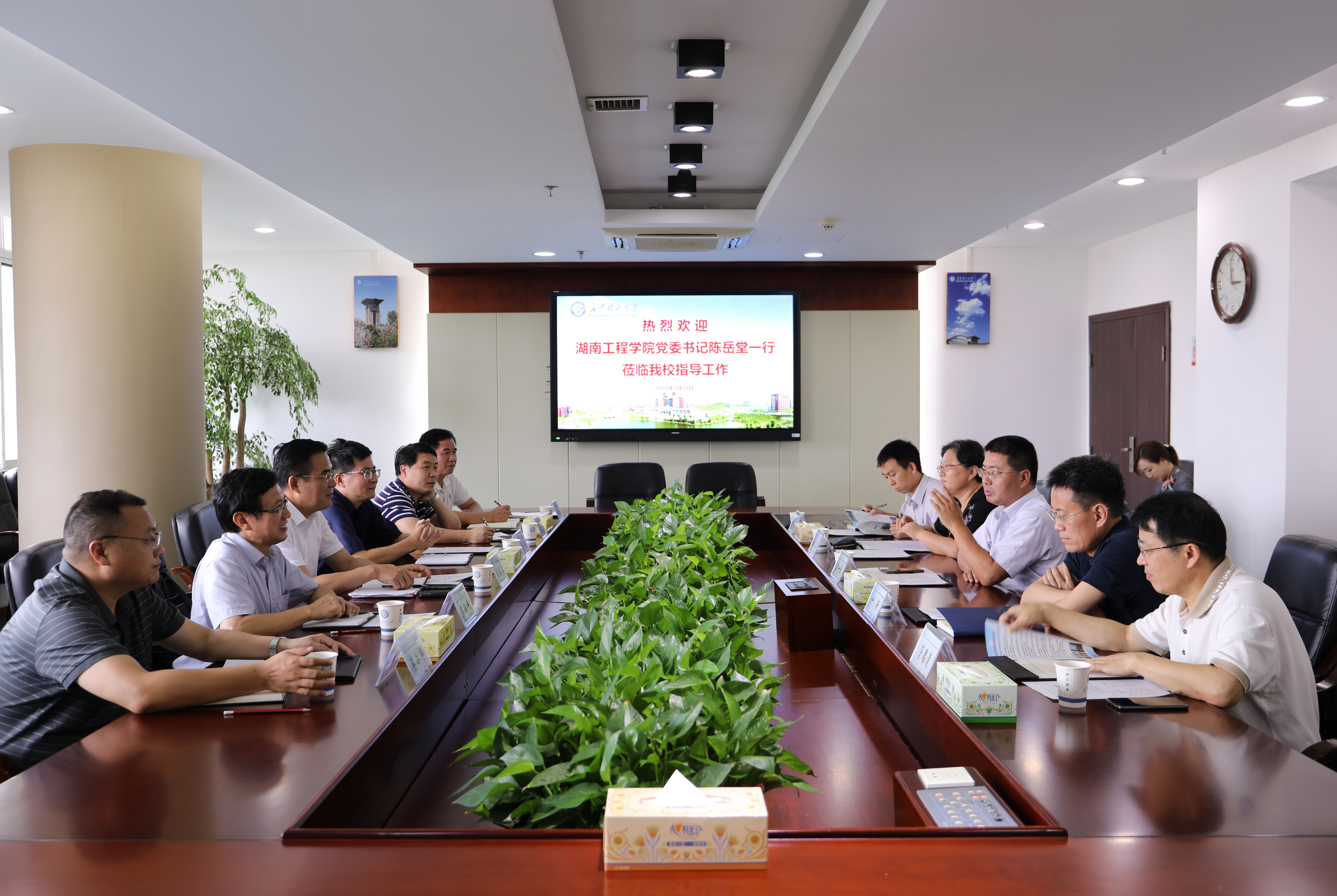 7月10日下午,湖南工程学院党委书记陈岳堂、校长易兵、副校长罗毅平、党政办公室主任曾永卫、研究生工作处处长李小华、改革发展处处长李靖一行6人来云顶国际vip8866调研。学校在云塘校区一办五楼会议室举行了座谈会,由校长曹一家主持。副校长叶泽,学科与规划处、研究生院、党政办负责人参加座谈。