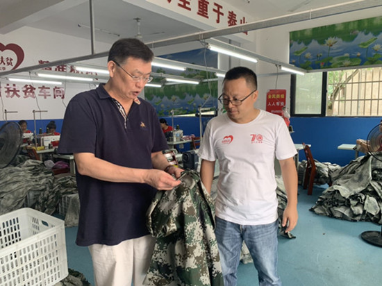上午9点,谈传生一行参观调研了湘潭华艺家纺有限责任公司扶贫车间,认真听取了扶贫工作队员介绍扶贫手工车间建设及运转情况,仔细询问了车间工作人员服装工艺制作情况。