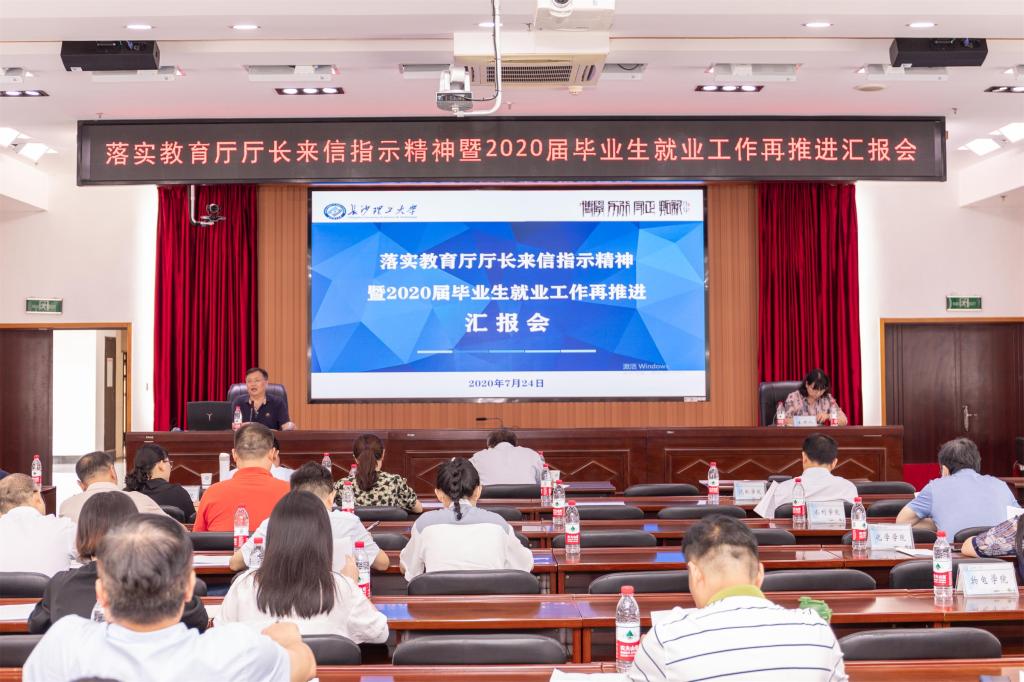 会上,谈传生传达了教育厅厅长给校长书记的一封信的相关内容,分析了目前2020届毕业生就业动态数据,部署了下一阶段的就业工作。各院(系)先后汇报了就业工作进展状况,初次就业率目标及下阶段工作措施,均表态争取初次就业率不低于去年同期。