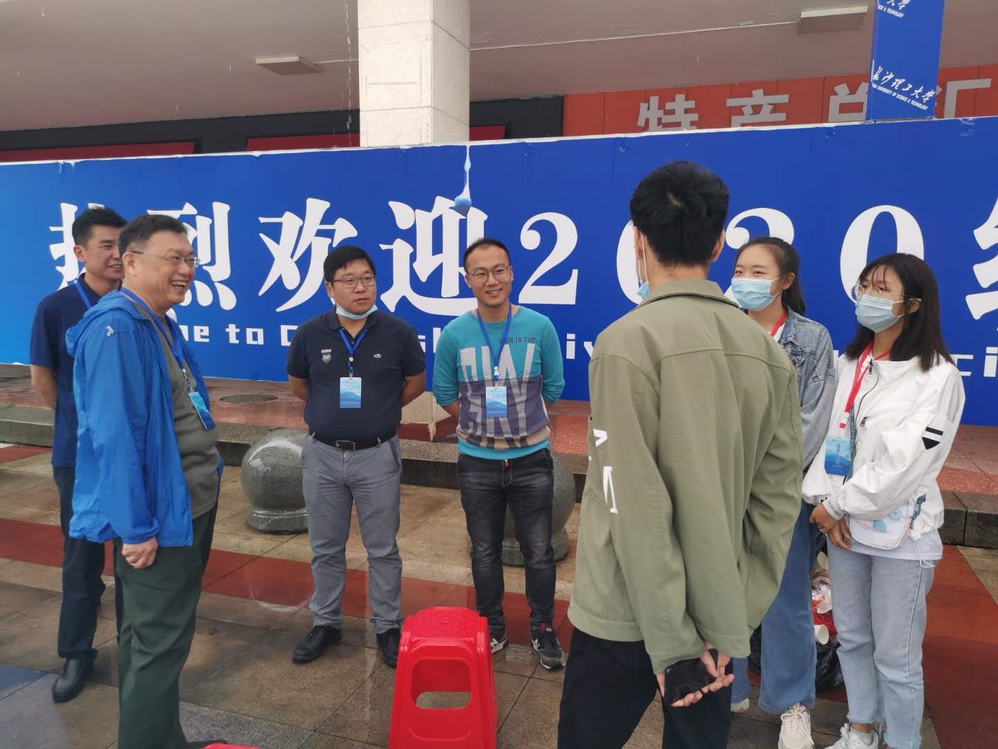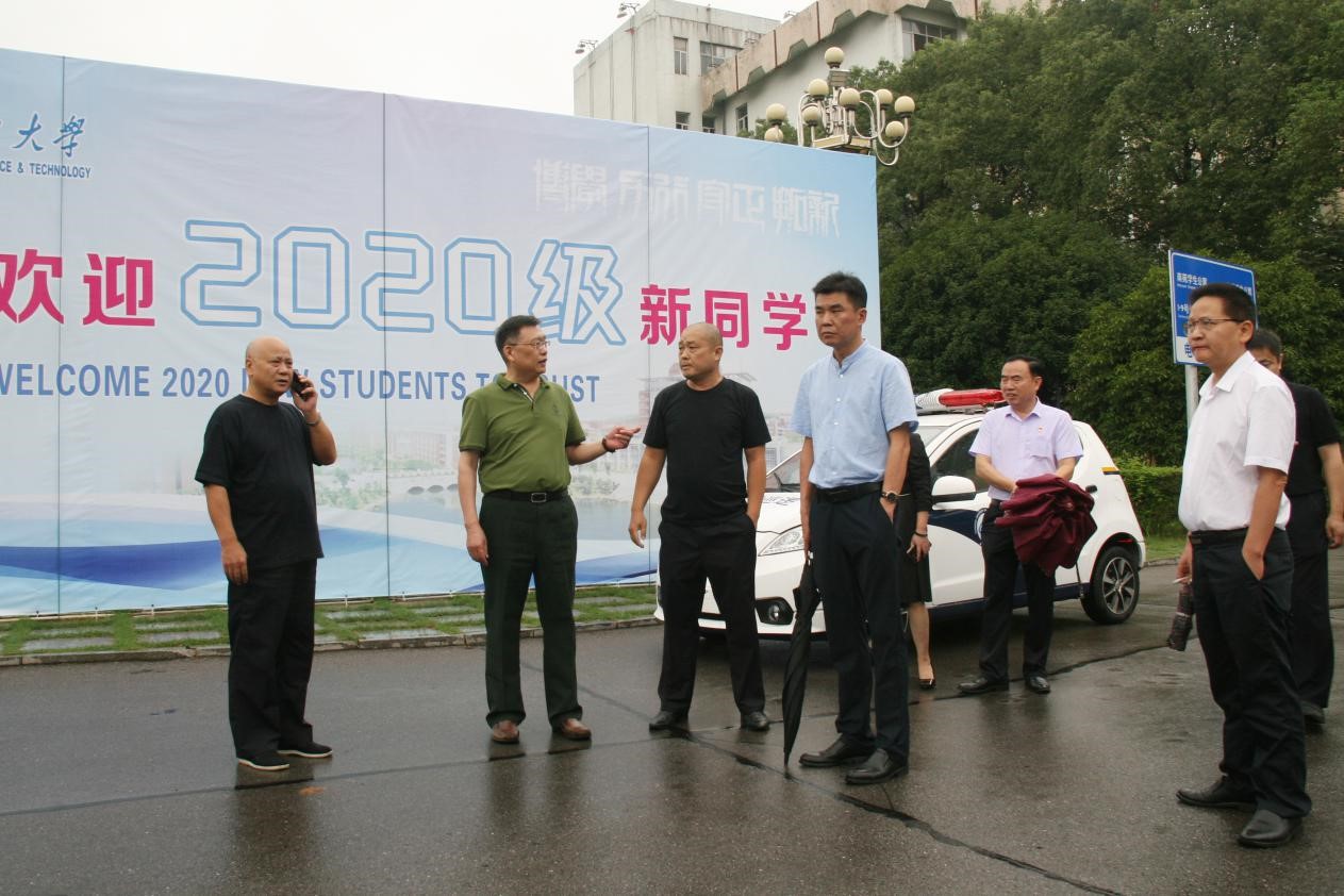 9月16日上午,副校长谈传生在党政办、宣传部、学工部、国资处、保卫处、后勤中心等部门负责人陪同下,在金盆岭校区检查2020级新生开学准备工作。