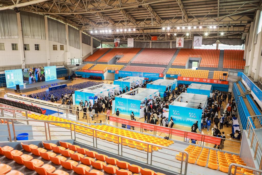最后,中交集团锐力量宣传团用别开生面的宣讲方式为专场招聘会拉开了帷幕。招聘现场人头攒动,咨询与应聘的学生在每个展位前排起了长队,学生们手持多份简历,寻找符合意向的单位。