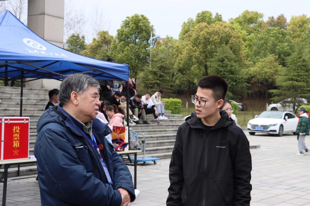 本届竞赛入围校级决赛的作品有81件,涉及科技发明、哲学社科、自然科学等多类学科。比赛现场,各参赛团队通过海报宣传、作品讲解、现场演示等方式多角度介绍了作品构想、设计和用途。评审专家针对参赛作品的科学性、先进性和现实意义进行现场问询,结合项目申请书和汇报人的表现,在选题、写作规范、现场表现力等提出建设性的意见,针对学术作品的理论分析框架、实证研究方法、调查问卷设计指标依据等方面给予了指导。校团委书记王学成等与参赛选手现场交流。