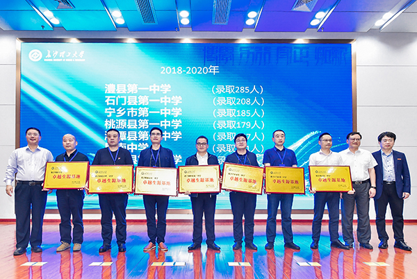 会上还举行了“卓越生源基地”授牌仪式,学校领导为澧县第一中学、石门县第一中学、宁乡市第一中学、桃源县第一中学、湘潭县第一中学、周南中学、新化县第一中学7所中学授牌。近三年,以上7所中学被云顶国际vip8866录取人数高达1242名,形成了协同发展的良性机制,在一流人才培养方面硕果累累。