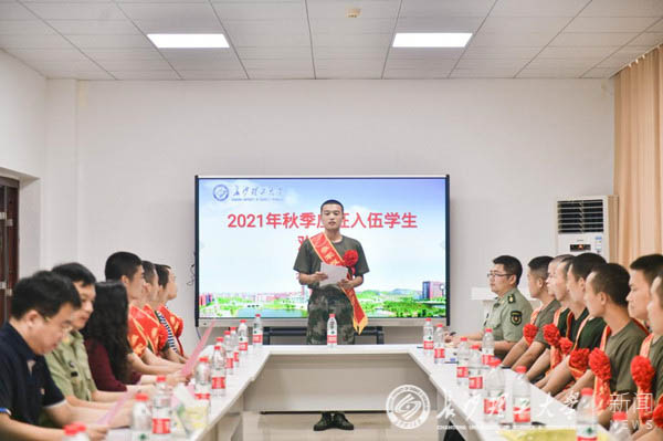 会上,入伍学生代表、艺术学院2020级学生韩龙亿豪讲述了入伍初心和对军旅生活的期待,表示将秉承“博学、力行、守正、拓新”长理校训精神,在参军路上不懈拼搏,为校争荣,为国争光。他代表全体入伍学生庄严承诺:请党放心,强国有我,到祖国最需要的地方建功立业!