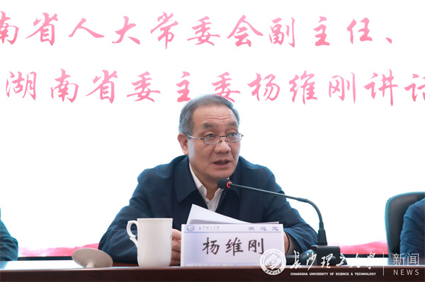 校党委书记付宏渊向杨维刚汇报了学校近年来取得的发展成绩,感谢民盟湖南省委对学校长期以来的关心与指导,表示学校党委高度重视民主党派工作,为民主党派履职搭建了平台、提供了路径,充分发挥了民主党派的积极作用。