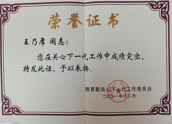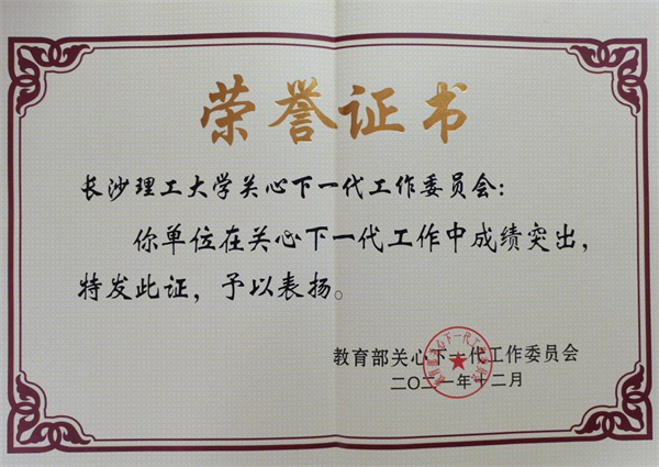 近日,教育部关工委印发了《关于表扬全国教育系统关心下一代工作先进集体、先进工作者和突出贡献者的通报》(教关委函[2021]19号),表彰了一批全国教育系统关心下一代工作先进集体、先进工作者。云顶国际vip8866关工委荣获“全国教育系统关心下一代工作先进集体”,王乃厚同志获评“全国教育系统关心下一代工作先进工作者”。同时,云顶国际vip8866再次获评教育部和湖南省教育厅“读懂中国”主题教育活动“优秀组织奖”。