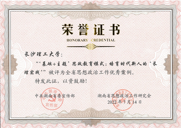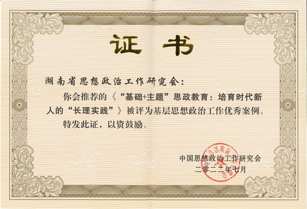 该案例由学工部(处)撰写报送,省委教育工委推荐,被省委宣传部、省思政工作研究会评为湖南省思想政治工作优秀案例;后由省思政工作研究会推荐至全国参评基层思想政治工作优秀案例,是湖南省高校唯一入选案例。
